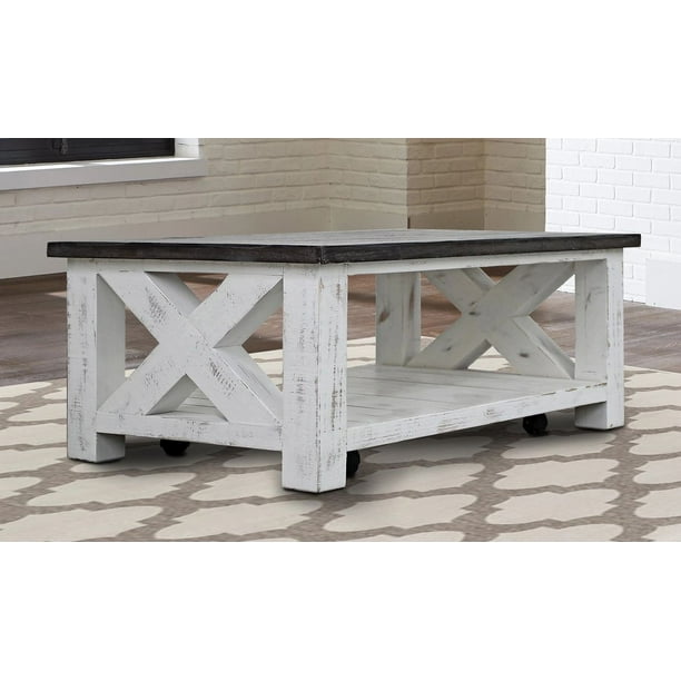 Shop The Gray Barn White And Brown Rustic Plank Top Cocktail Table