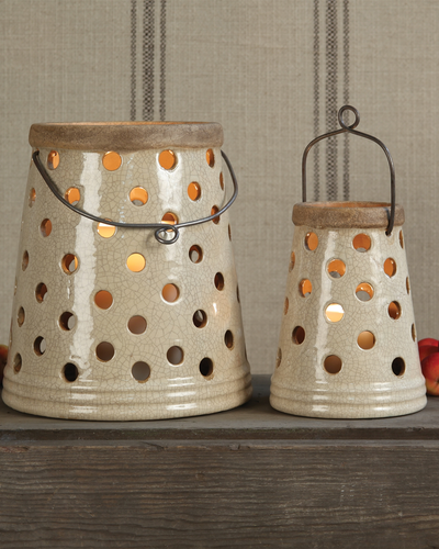 Set 2 Antique White Lanterns Wooden Lanterns Lantern Set