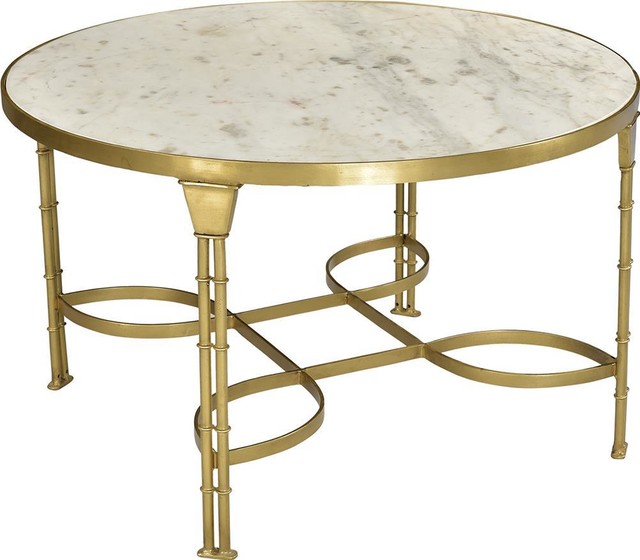 36 Round Coffee Table Metal Bass Antique Brass Finish White
