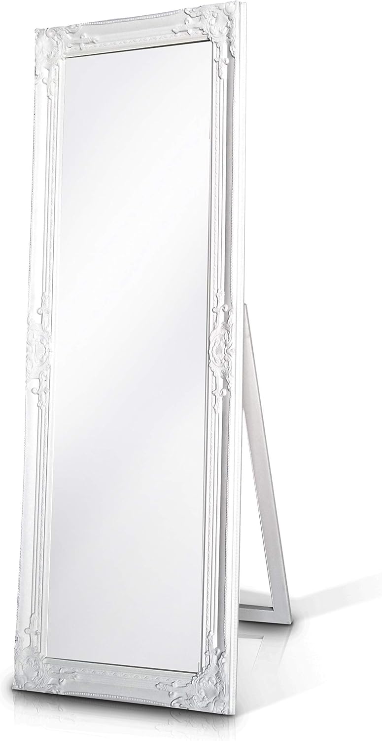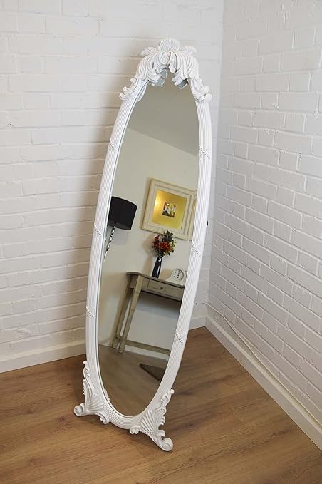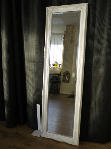 Full Length Mirror With Ornate Matt White Frame Standing Mirror