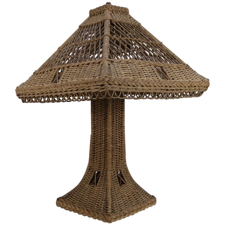 Antique Arts And Crafts Heywood Wakefield School Wicker Table Lamp Circa 1920 At 1stdibs