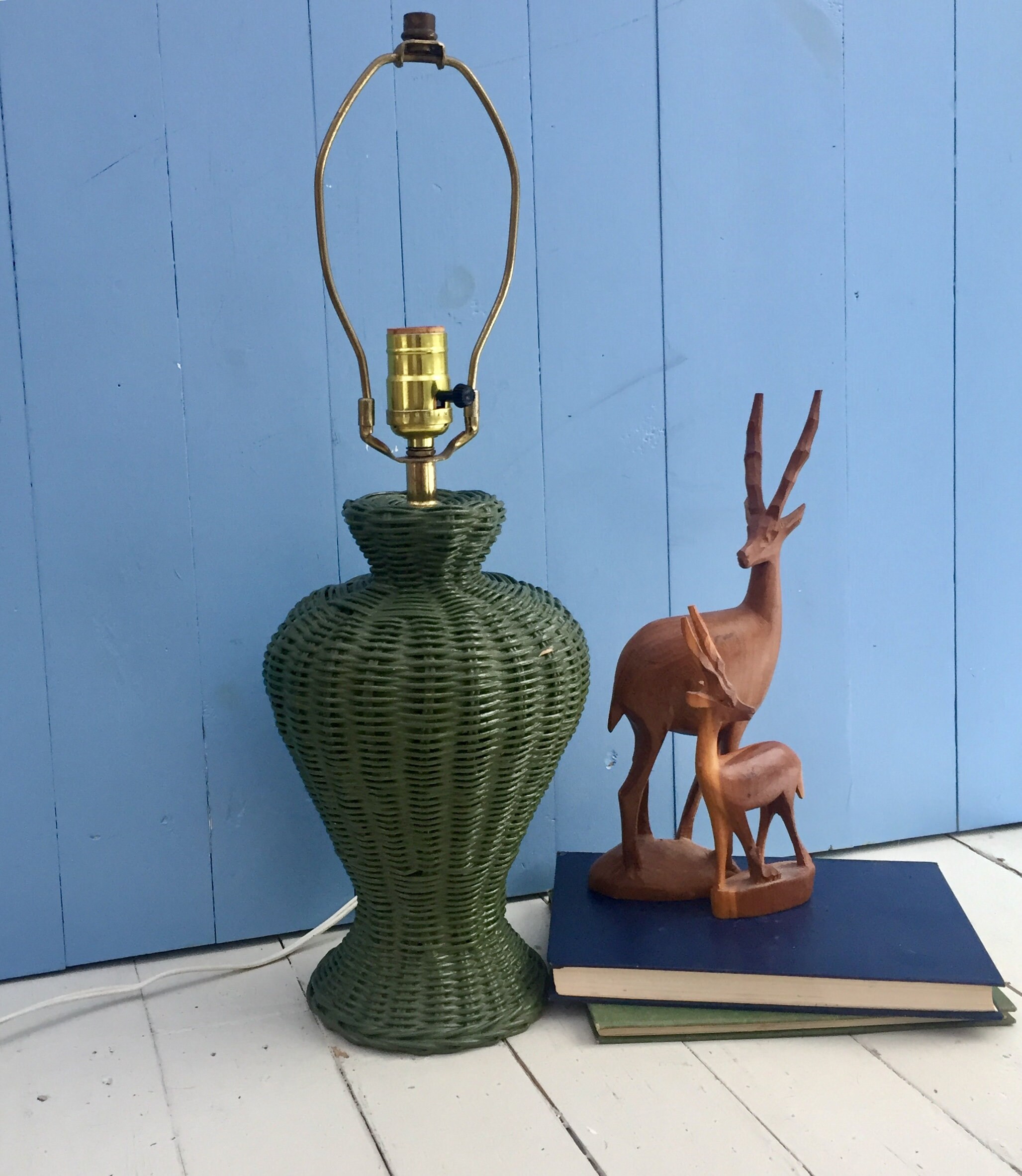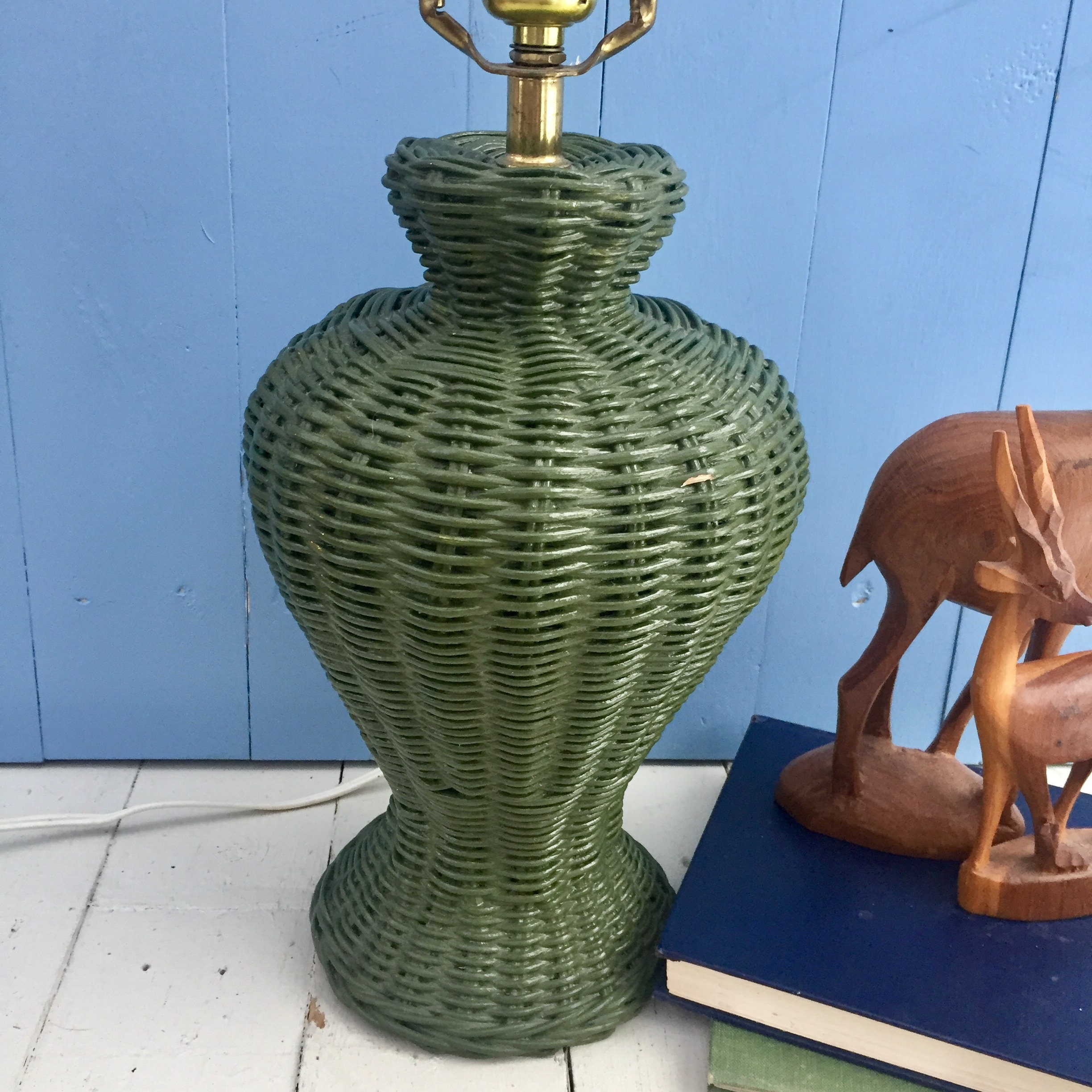 Vintage Green Wicker Table Lamp Vintage Wicker Lamp Vintage Green Table Lamp Vintage Boho Table Lamp