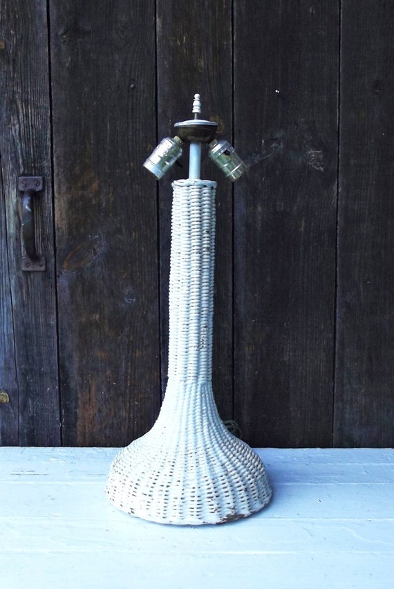 Vintage Wicker Lamp White Wicker Table Lamp Two Light Etsy