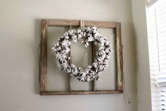 Old Window Frame Decor With Cotton Wreath Antique Window Vintage
