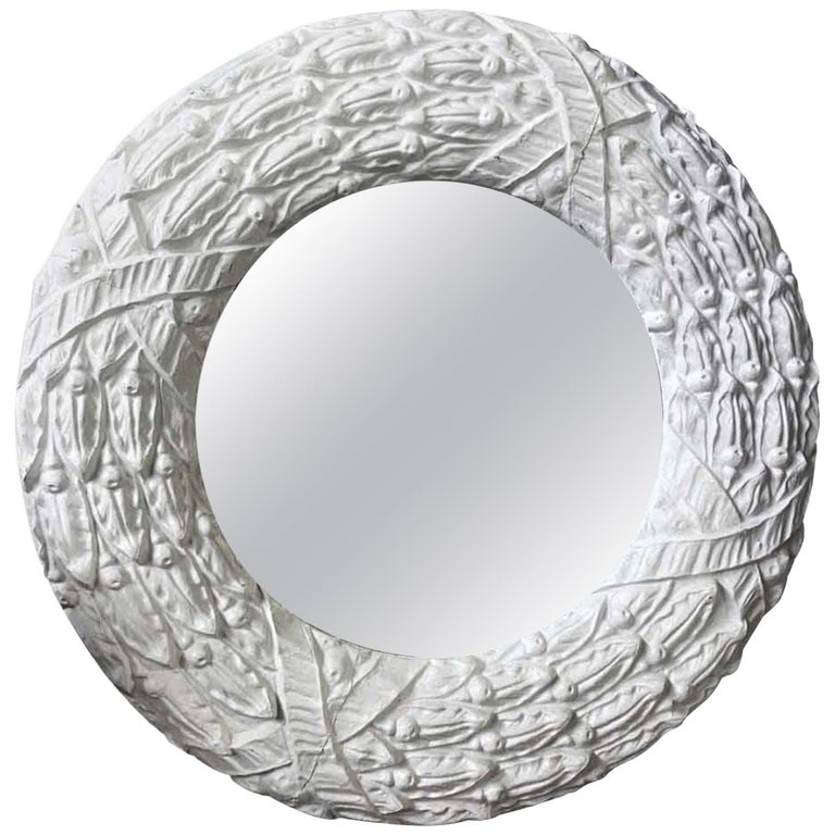 1920s Antique Zinc Window Surround Circular Ornate Mirror With A