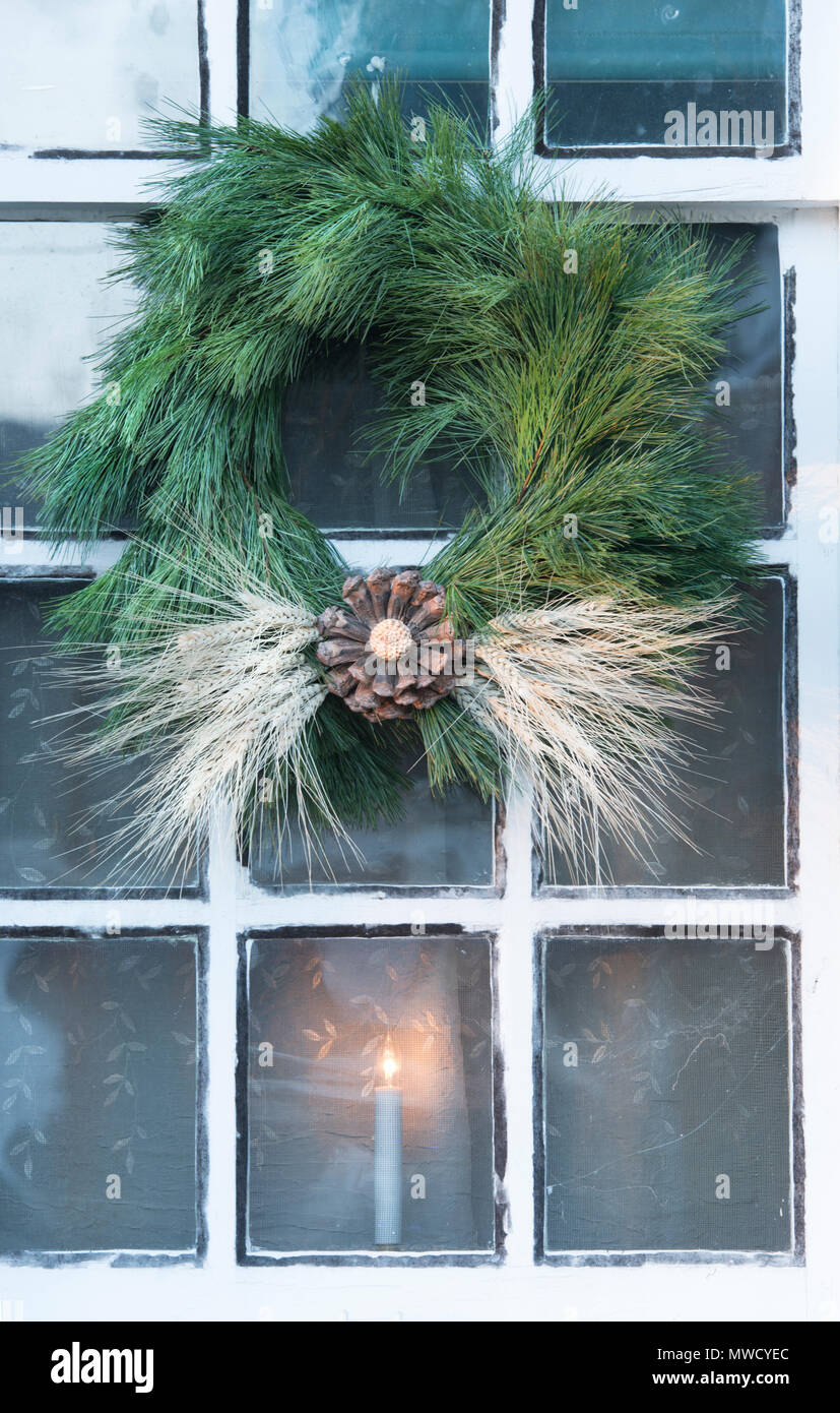 Christmas Decorations Wreath Interior Vintage Style Window Stock