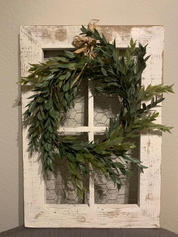 Antique Window Frame Farmhouse Wreath Farmhouse Window Etsy