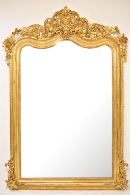 Large Antique Carved And Gilded Wood Wall Mirror 1850s For Sale