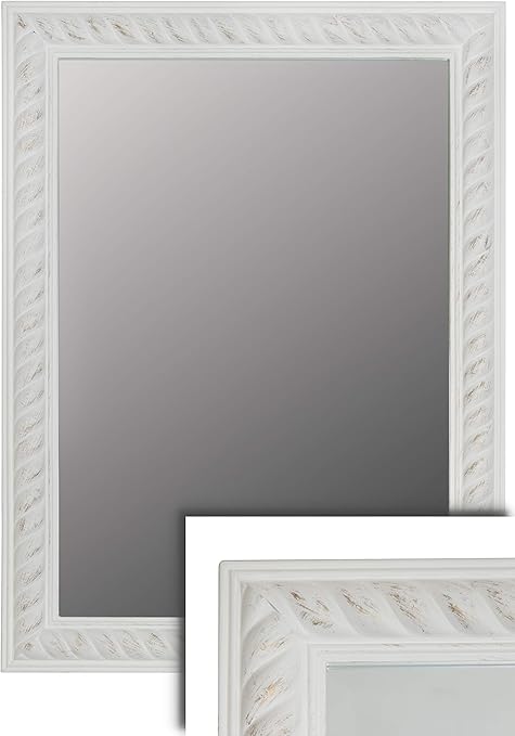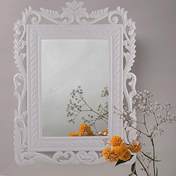 Antique Wooden Wall Mirror 90x110 Cm White Wooden Frame K B London