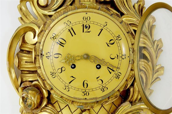 Antique Style Swedish Gilt Carved Wood Wall Clock From
