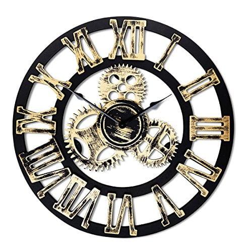Large Wooden Wall Clock Vintage Gear Clock Us Style Living