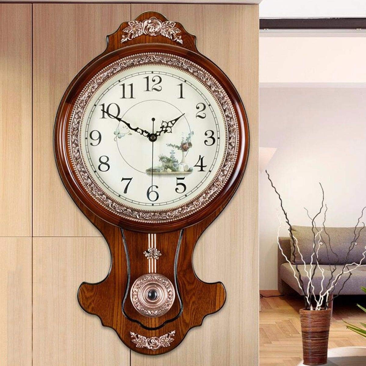 Pendulum Wall Clock Metal Wooden Silent Antique Living Room Best