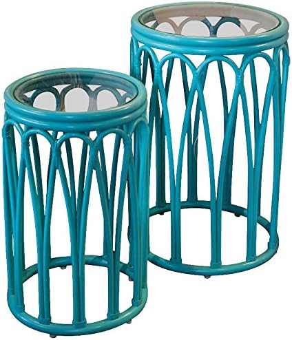 Cuba Accent Tables Aqua Set Of 2 With Glass Wicker One Imports