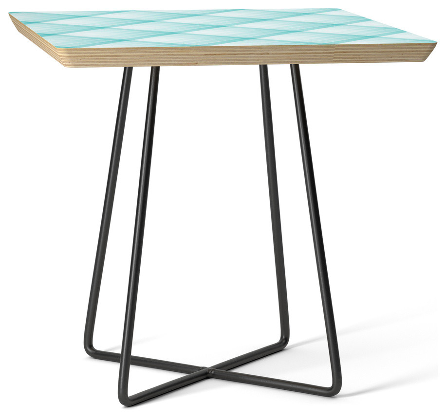 Society6 Side Table Aqua Blue Geometric Squares Diagonal Check