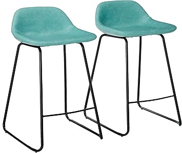 Amazon Com Cortesi Home Ava Counterstools Aqua Blue Faux Leather