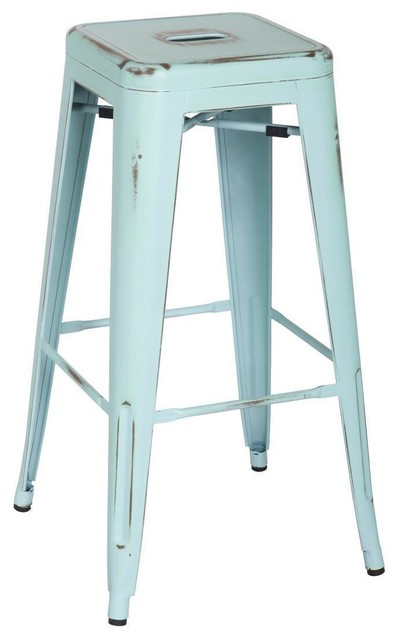 Jonas Metal Backless Bar Stool Distressed Aqua Set Of 4
