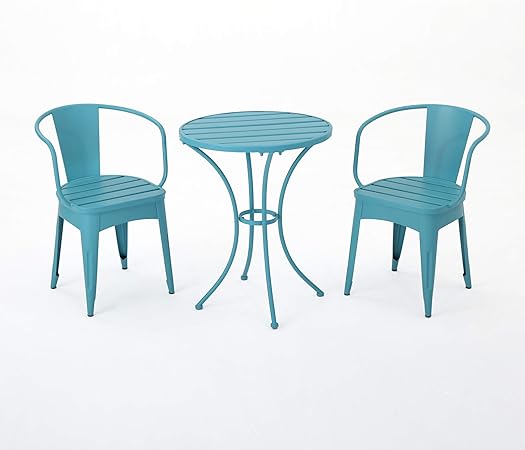 Noble House Matte Teal 3 Piece Metal Round Outdoor Bistro Set