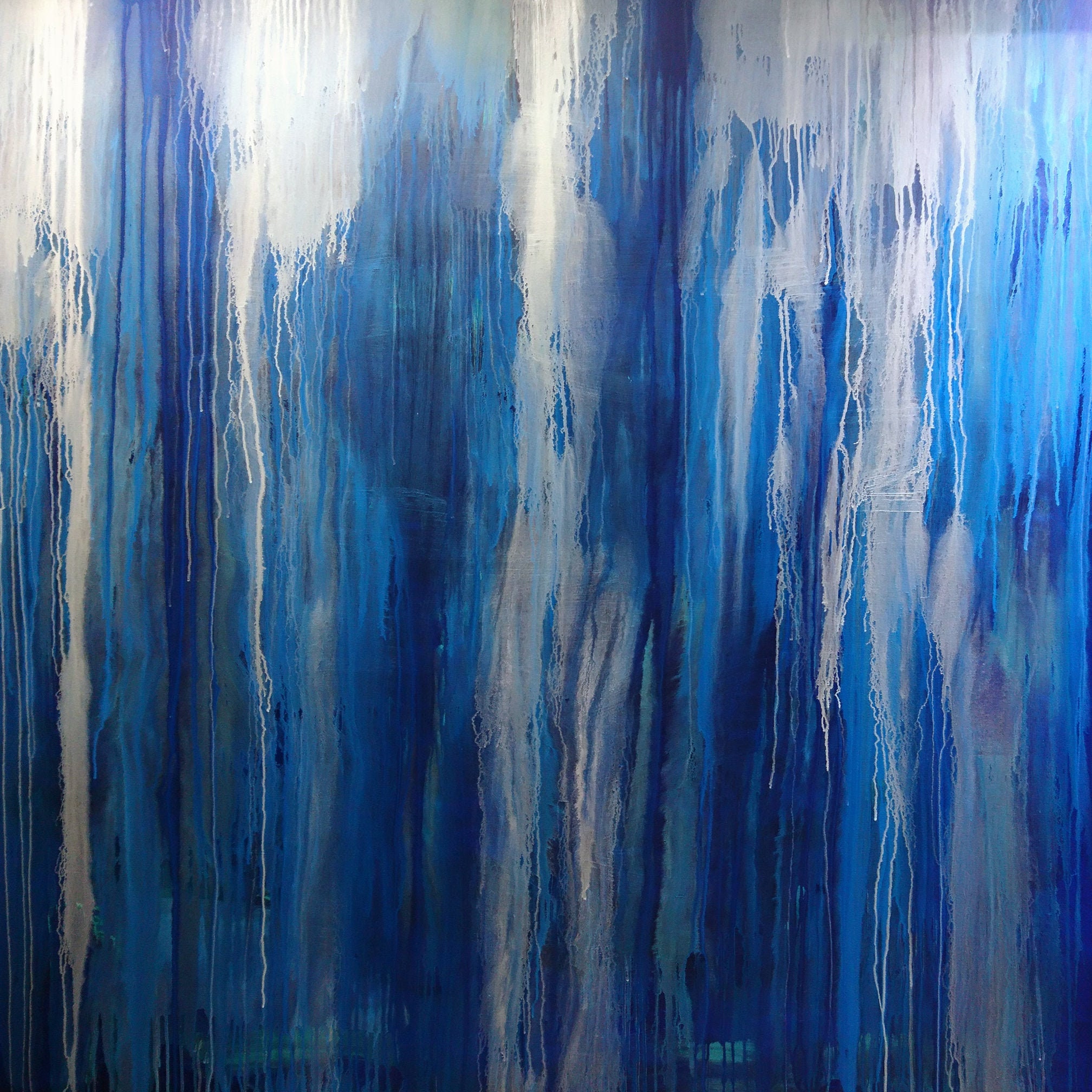 Aqua Blue Abstract Painting Xlarge Canvas Art Oversized Painting