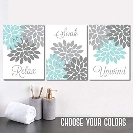 Amazon Com Aqua Gray Bathroom Wall Art Canvas Or Prints Flower