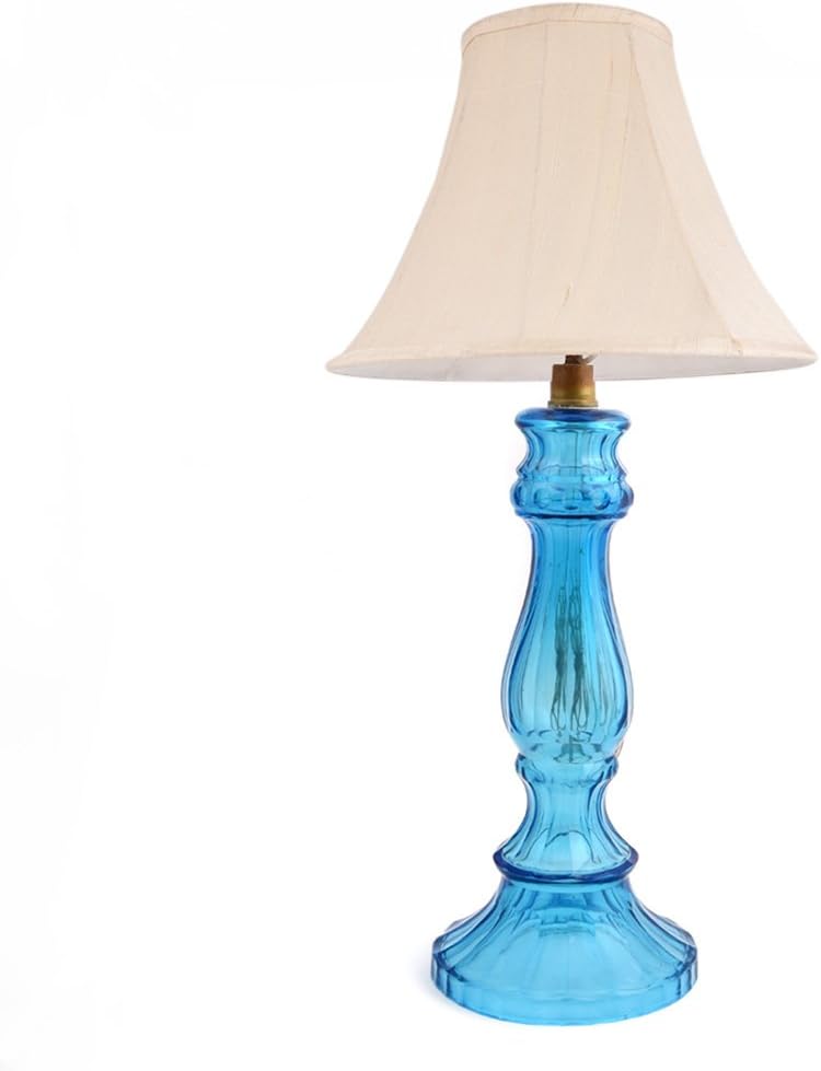 Kings Brand Ardoch Aqua Blue Glass With White Fabric Shade Table