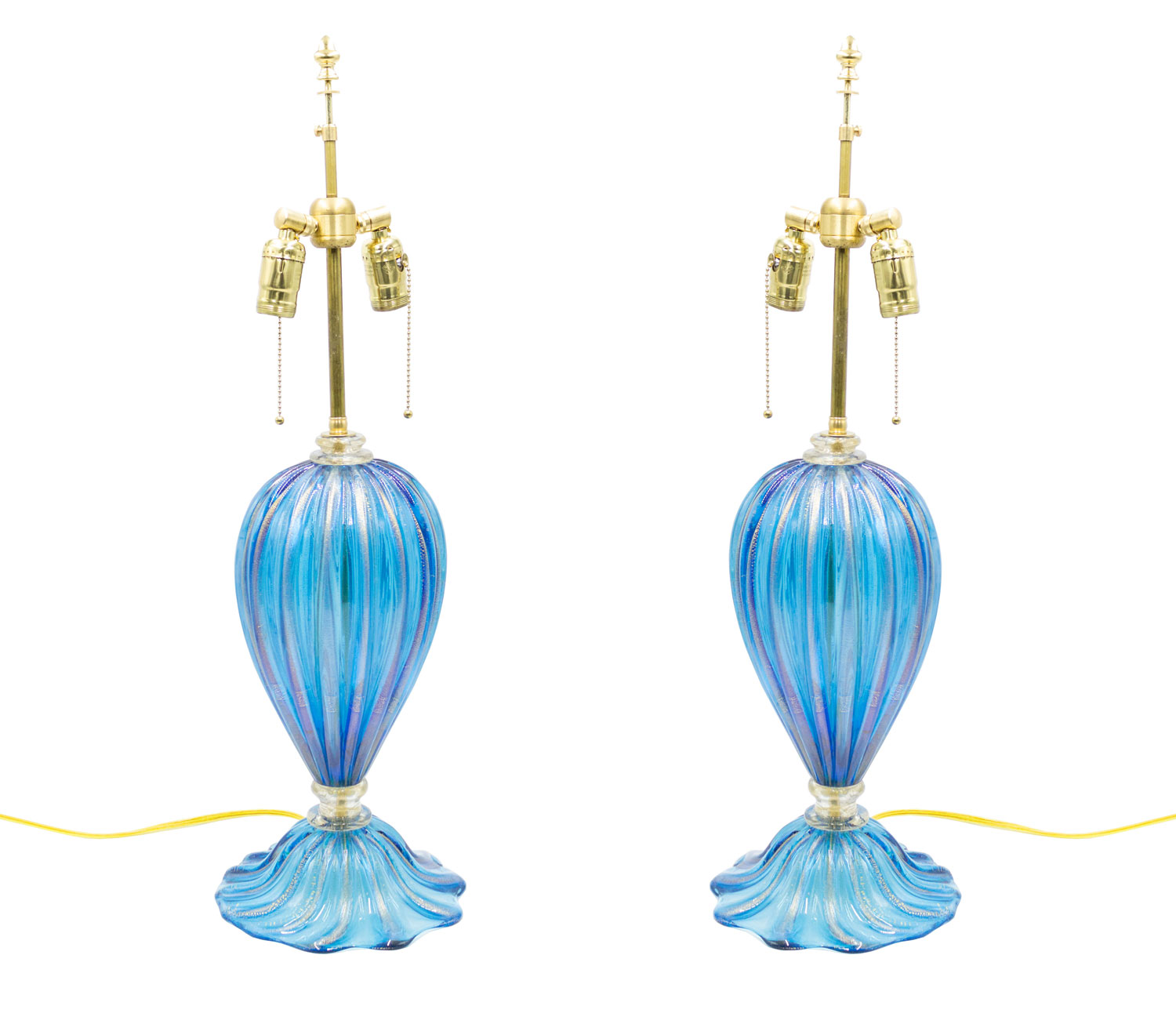 Vintage Murano Aqua Blue Glass Brass Lucite Table Lamp A Pair For