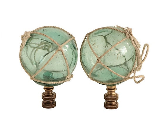 Netted Aqua Glass Lamp Finials On Chrome Bases A Pair Etsy