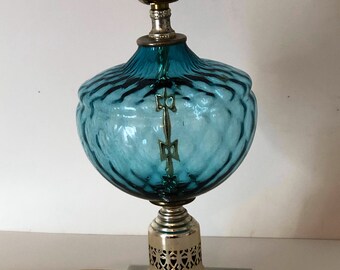 Art Glass Lamp With Shade Aqua Blue With Swirls Lucite Base