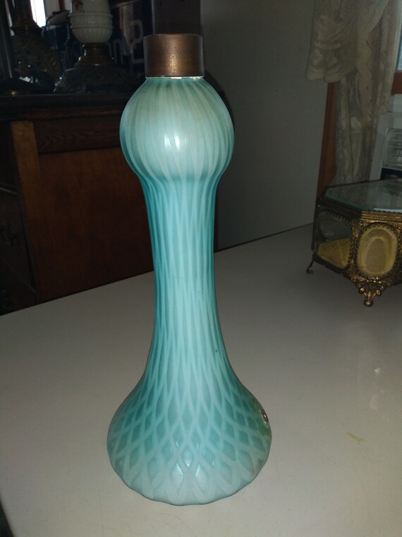 Electric Table Lamp With A Milk Glass Base Aqua Glass Font