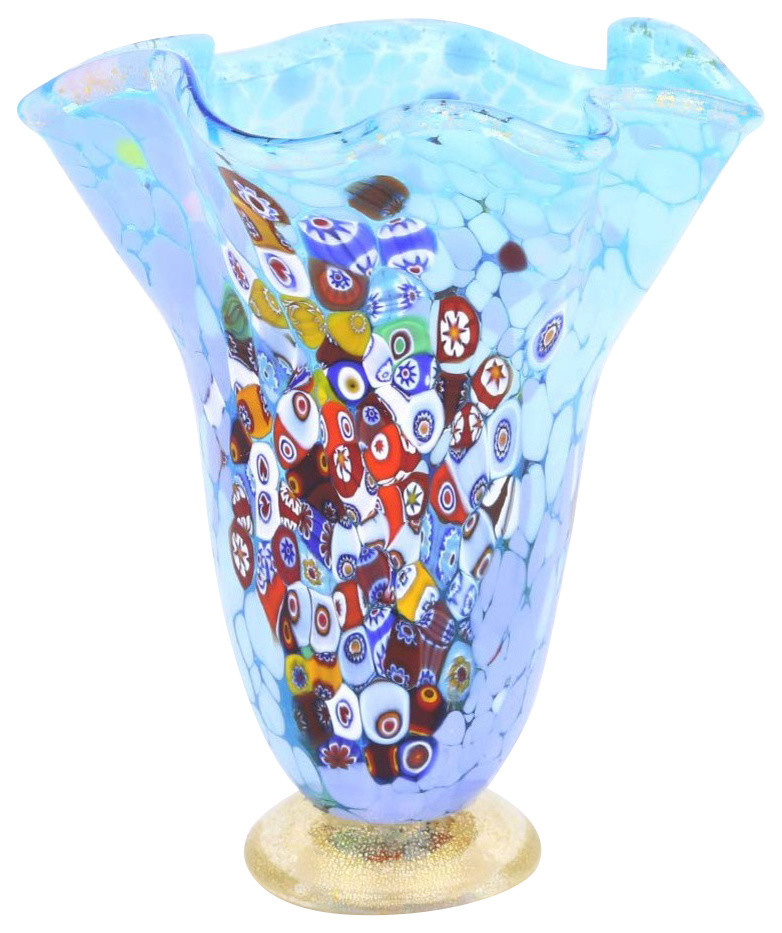 Murano Millefiori Art Glass Fazzoletto Vase Aqua Contemporary