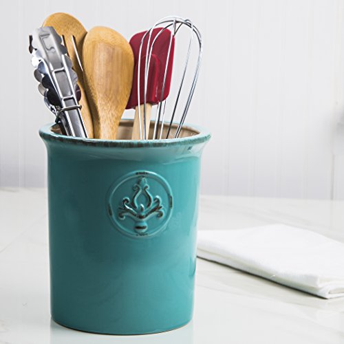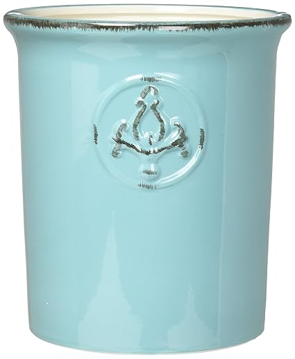 Buy Aqua Ceramic Utensil Crock With Embossed Medallion In Aqua