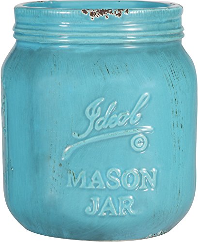 Mason Jar Aqua Blue Palais Essentials Ceramic Utensil Crock
