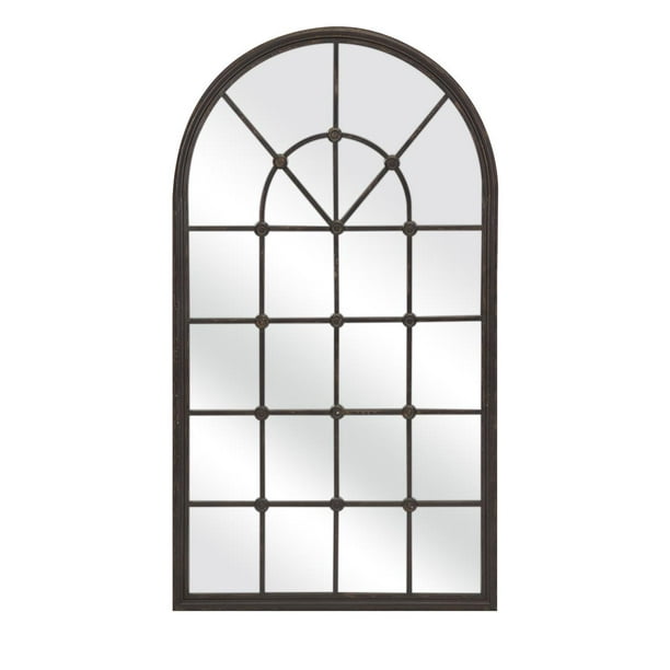 Decmode Metal And Wood Window Pane Arch Mirror Brown Walmart