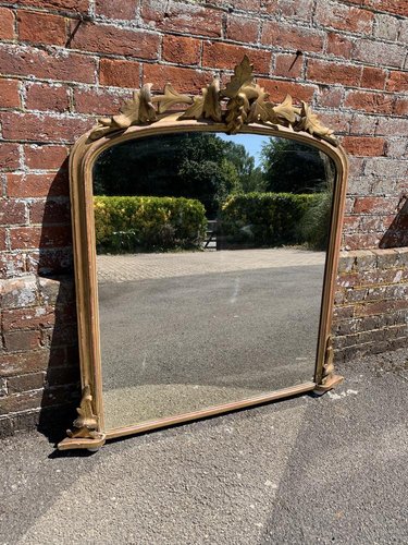Antique English Carved Wood And Gesso Gilt Arched Top Overmantle