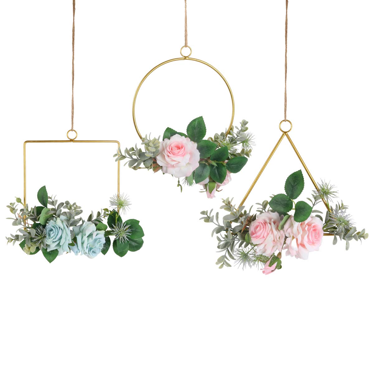Pauwer Floral Hoop Wreath Set Of 3 Artificial Rose Flower Garland
