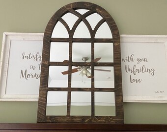 Rustic Wooden Arched Window Wall Mirror Farmhouse Wall Mirrors