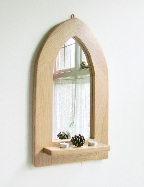 Gothic Arch Oak Mirror Oak Shelf Mirror Reclaimed Wooden Etsy