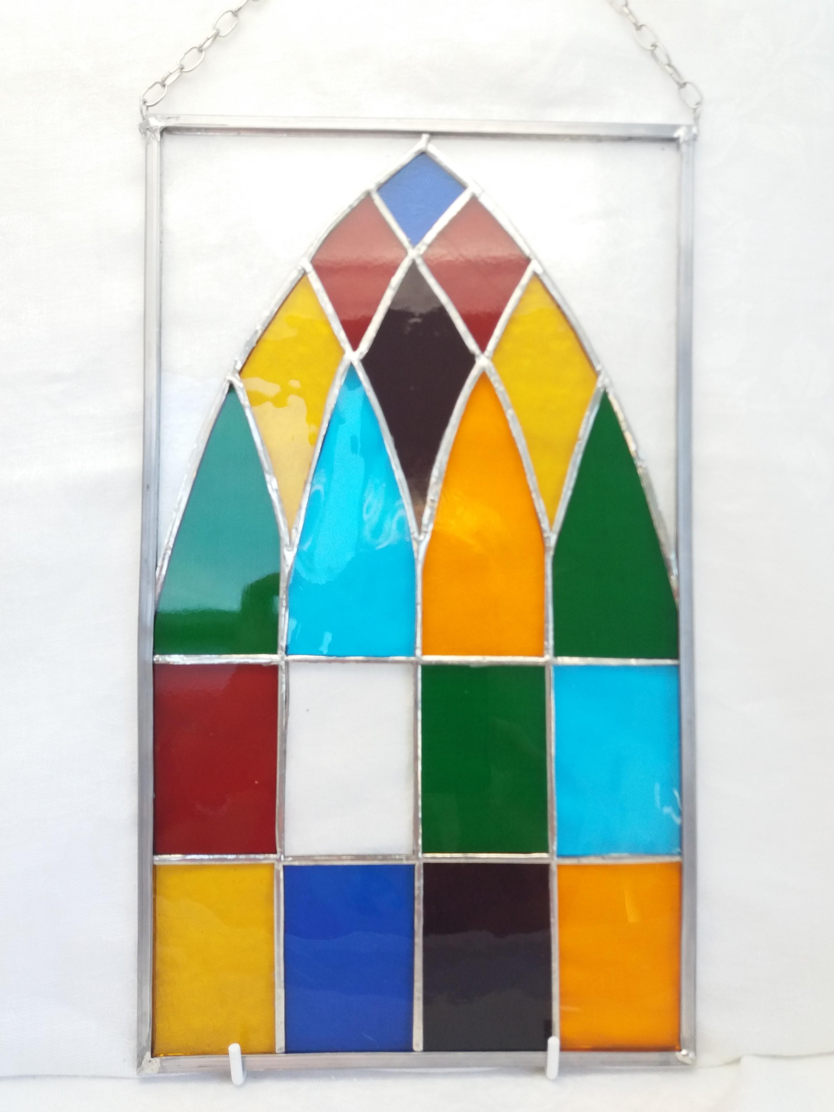 Large Stained Glass Window Panel Period Arched Bespoke Leaded