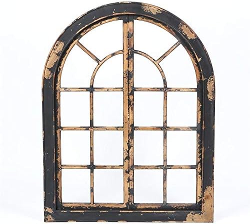 Rustic Wood Metal Arched Window Wall Art Vintage Iron Scrollwork