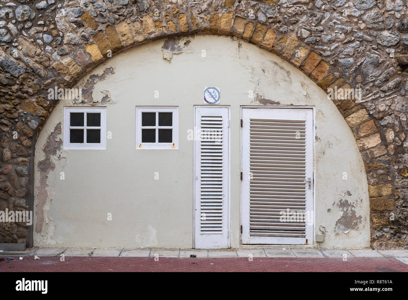 Arched Doorway With Old Shuttered Doors And Frames Curacao Stock