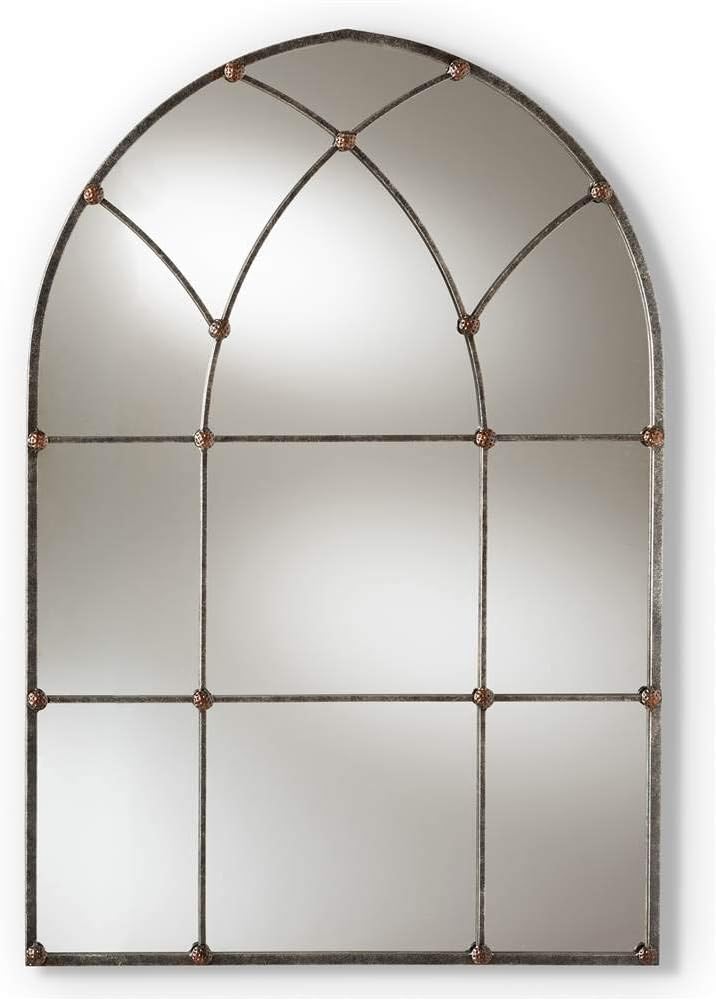 Bisonoffice 50 Arched Windowpane Mirror Antique Pewter