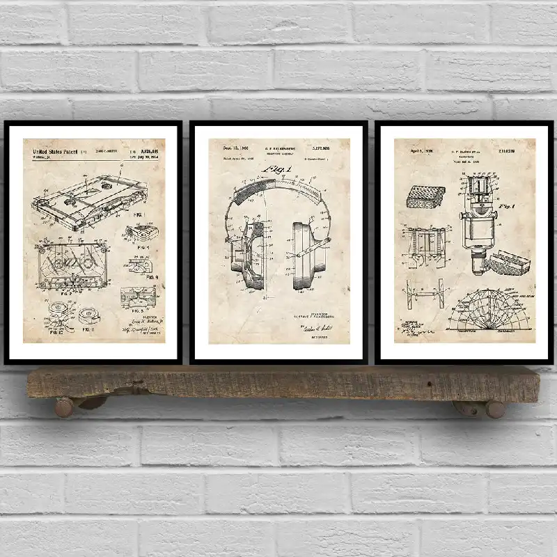 Canvas Painting Home Decor Nordic Music Recording Patents Vintage