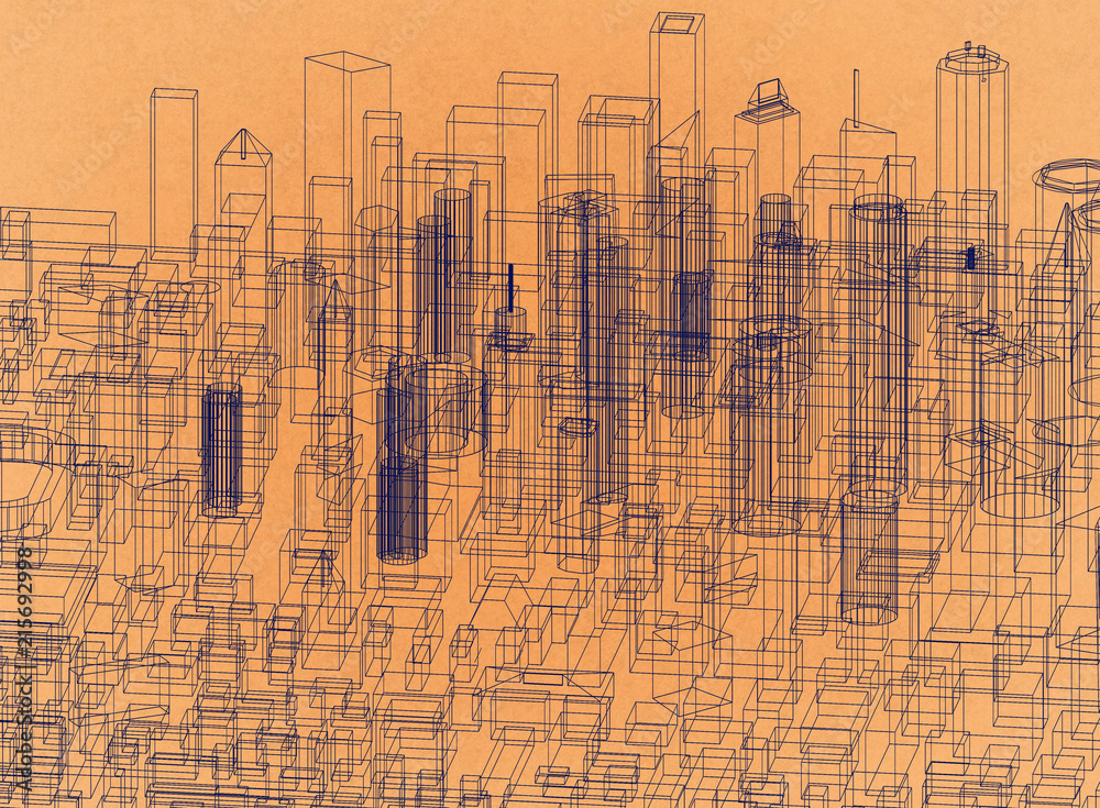 Wall Murals City Concept Retro Architect Blueprint Nikkel Art
