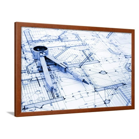 Architecture Blueprint And Tools Framed Print Wall Art By