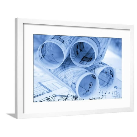 Rolls Of Architecture Blueprints And House Plans Framed Print Wall