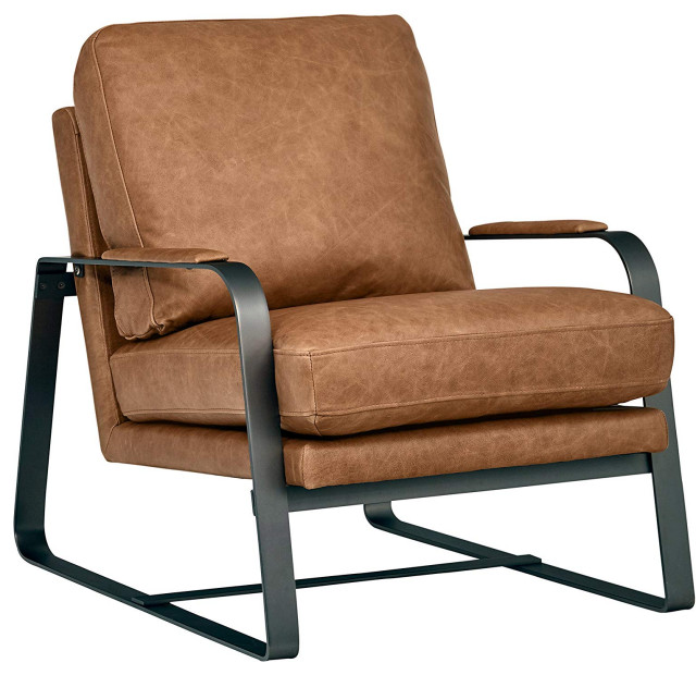 Armed Accent Chair Brushed Steel Base With Cognac Leather Seat