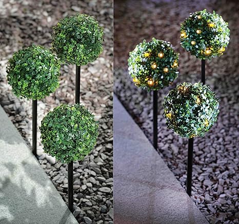 3 Pack Solar Powered Topiary Stake Ball Light 27 Led Dual Function