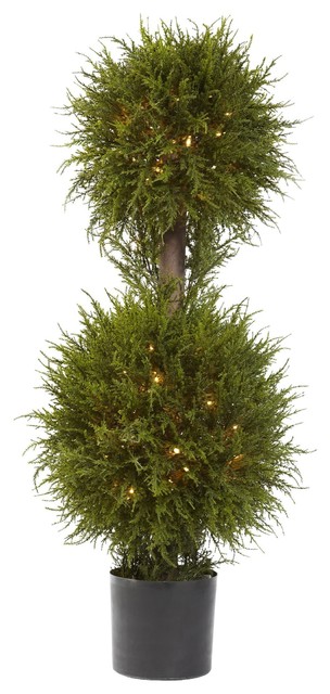 Buy Set Of 2 Lighted Pre Potted 4 Foot Artificial Cedar Topiary