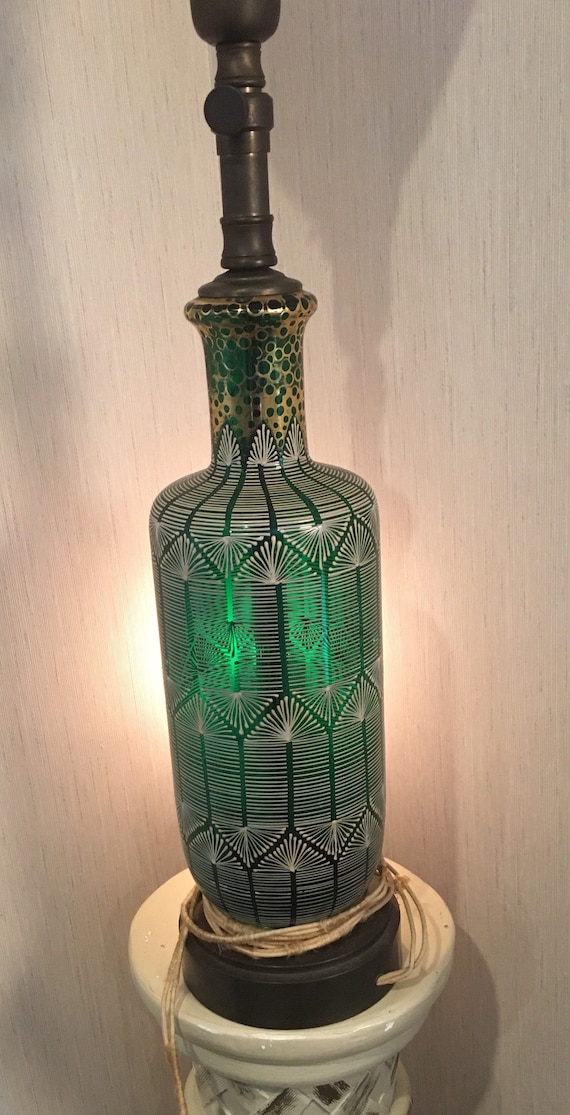 Vintage Artisan Emerald Green Table Lamp With Original Cloth Etsy