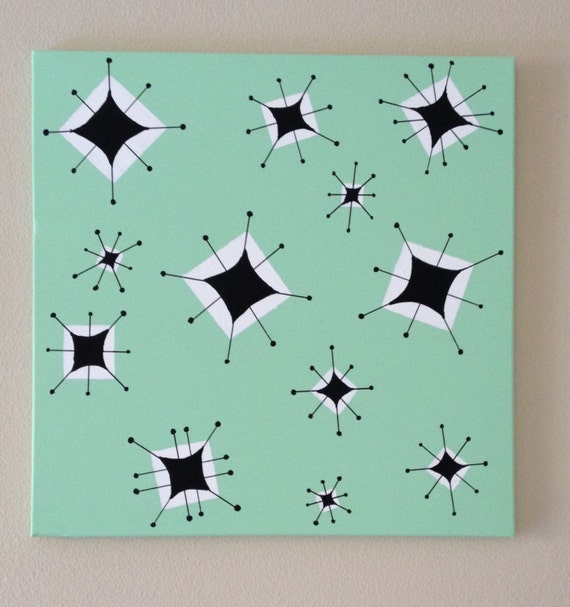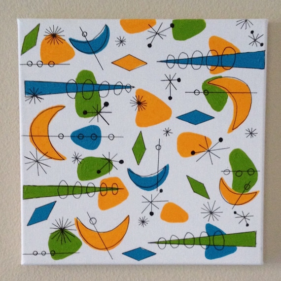 Mid Century Modern Wall Art Atomic 1950s Starburst Painting Etsy