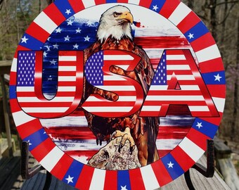 Patriotic American Red White Blue Bald Eagle Flag Star Stripe